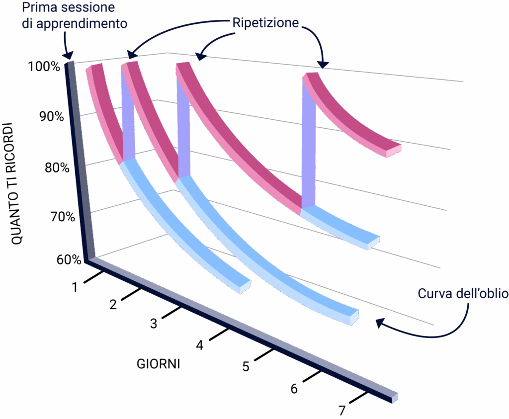 Ripeti le informazioni nel momento giusto, prima di dimenticarle. Così fissi i concetti più importanti e li ricordi più a lungo.